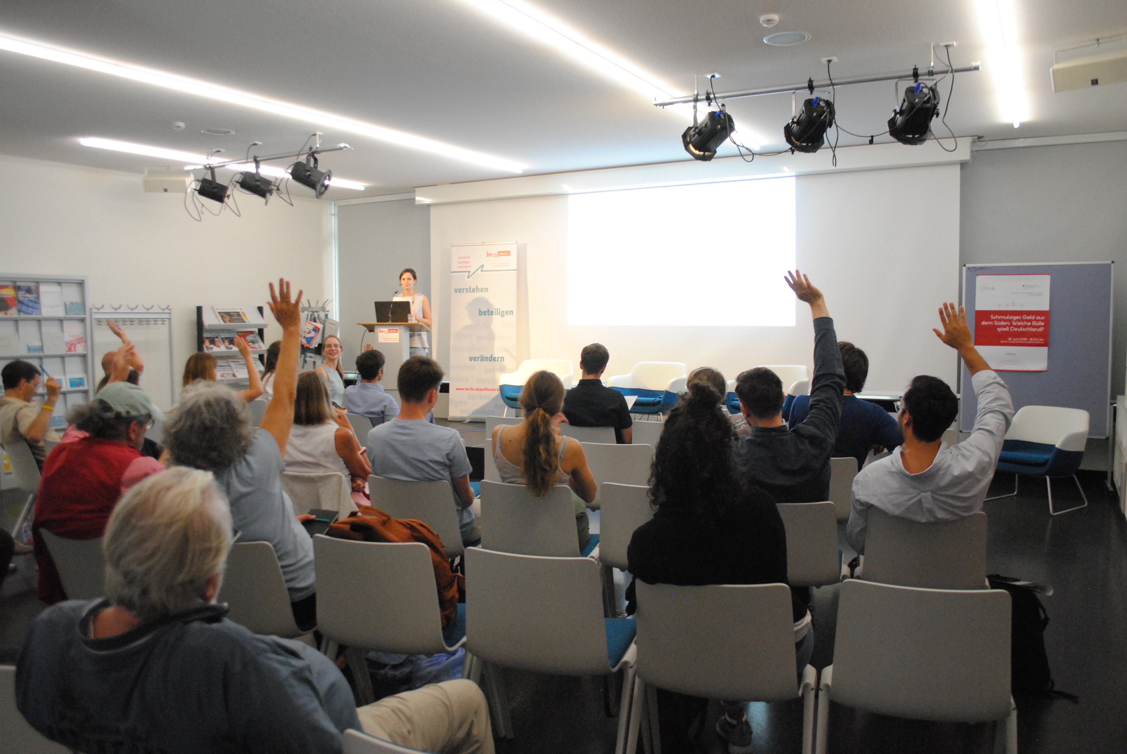 Am 28. Juni 2018 hat sich unsere Gruppe von Studierenden und Aktivistinnen mit Berliner*innen und Berliner getroffen, um die Problematik der illegalen Finanzströme und die Rolle Deutschlands zu debattieren. Über 40 Menschen namen an der Veranstaltung teil.